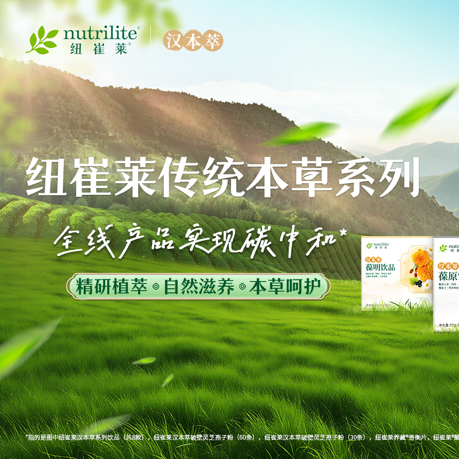 纽崔莱传统本草系列,精研植萃,本草呵护,多方位自然滋养健康! 汲取老祖宗「汉」方经典,协同养护 甄选道地草「本」,从种子到成品,溯源品质 实力科研加持,科学「萃」取植物营养成分 纽崔莱传统本草系列全线产品实现碳中和,让我们一起参与到低碳生活吧!