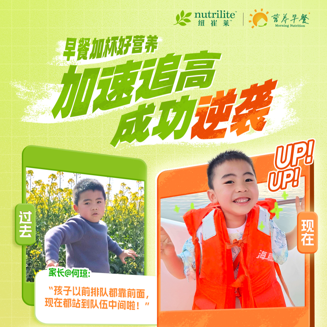 从身高落后到赶超同龄人 从戴着小眼镜到眼睛亮晶晶 孩子的每个小变化,都是成长的大惊喜! 早餐加杯好营养,解锁更多成长可能~